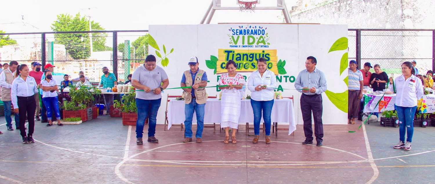 La presidenta municipal, Juanita Cortés Moo, acompañada del secretario del Ayuntamiento, Manuel Arturo Arvez Pérez; y del coordinador territorial del programa "Sembrado Vida" del estado de Campeche, Marcelo Contreras Rondan; participó en la inauguración del Tianguis Campesino del programa "Sembrando Vida". También estuvo presente Sara Camacho Castillo, facilitadora del programa "Sembrando Vida" del municipio de Calkiní.