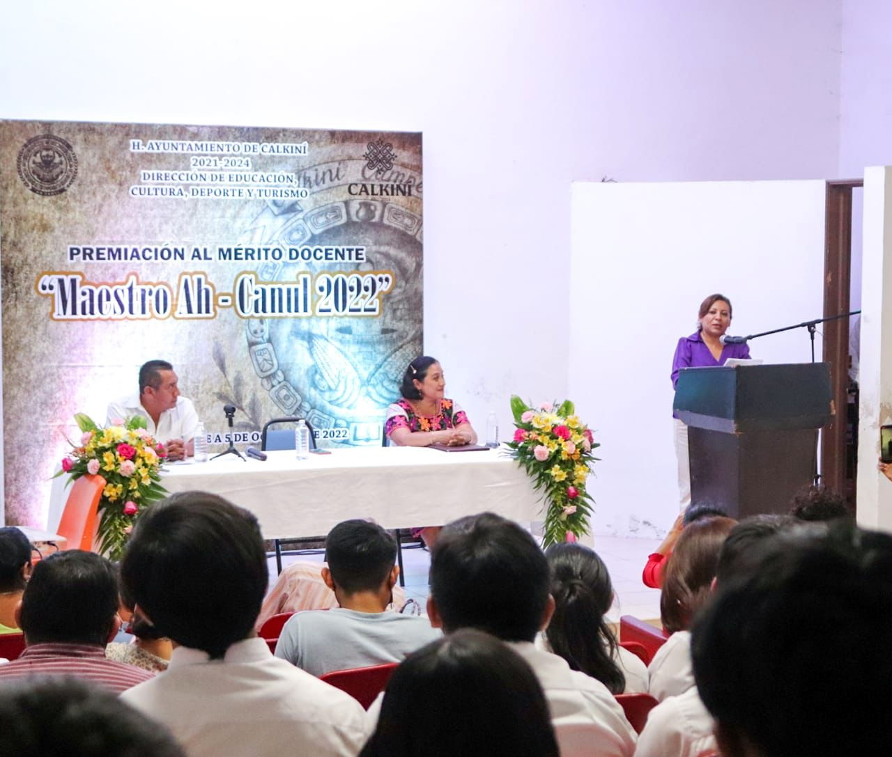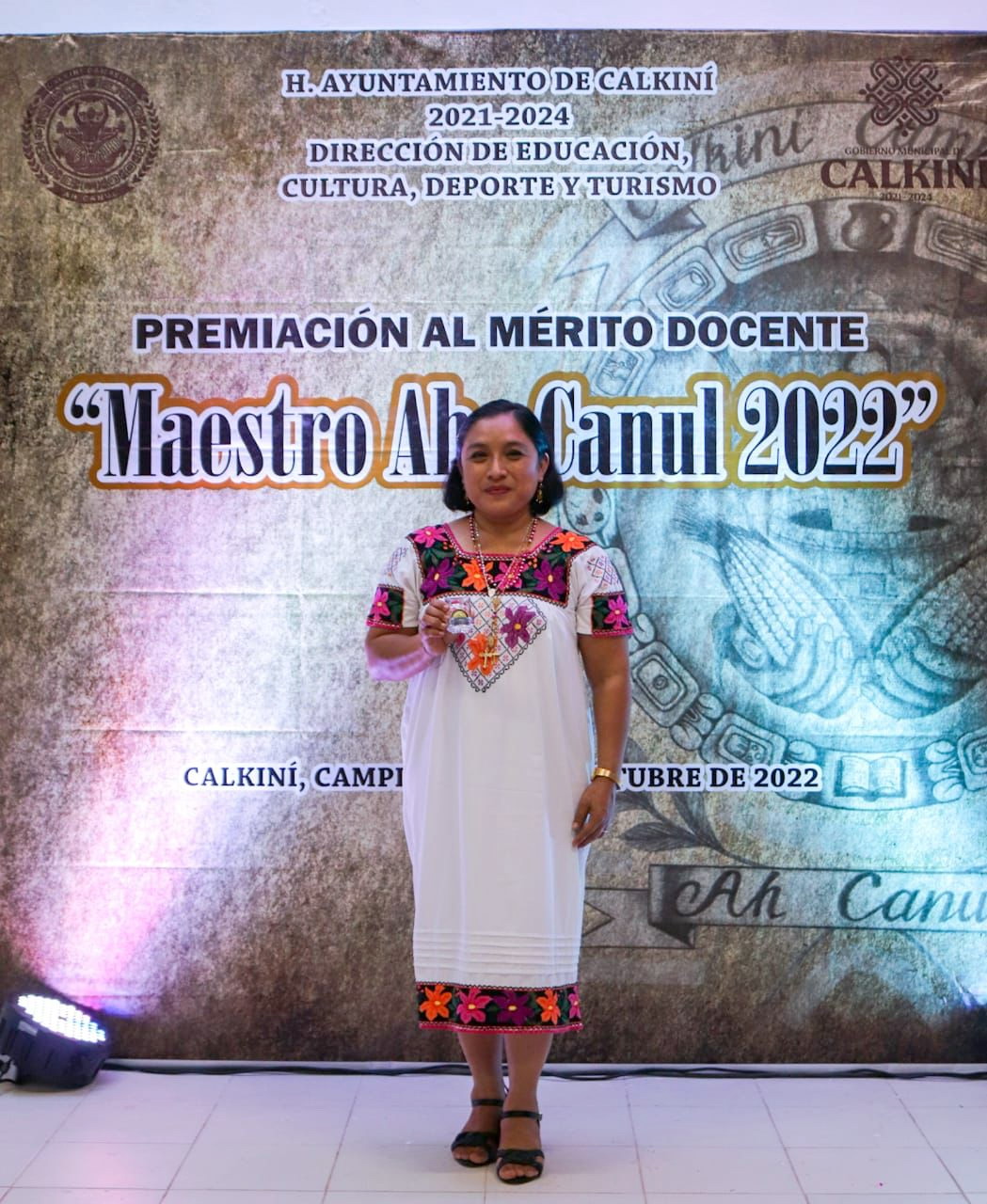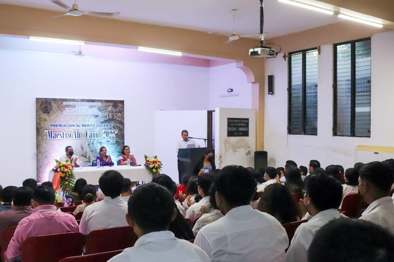 Autoridades municipales encabezadas por la edil Juanita Cortés Moo, entregaron premios y reconocimientos a los docentes ganadores del concurso “Maestro Ah Canul 2022”.