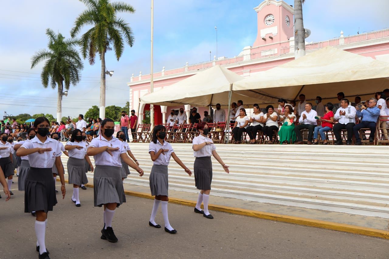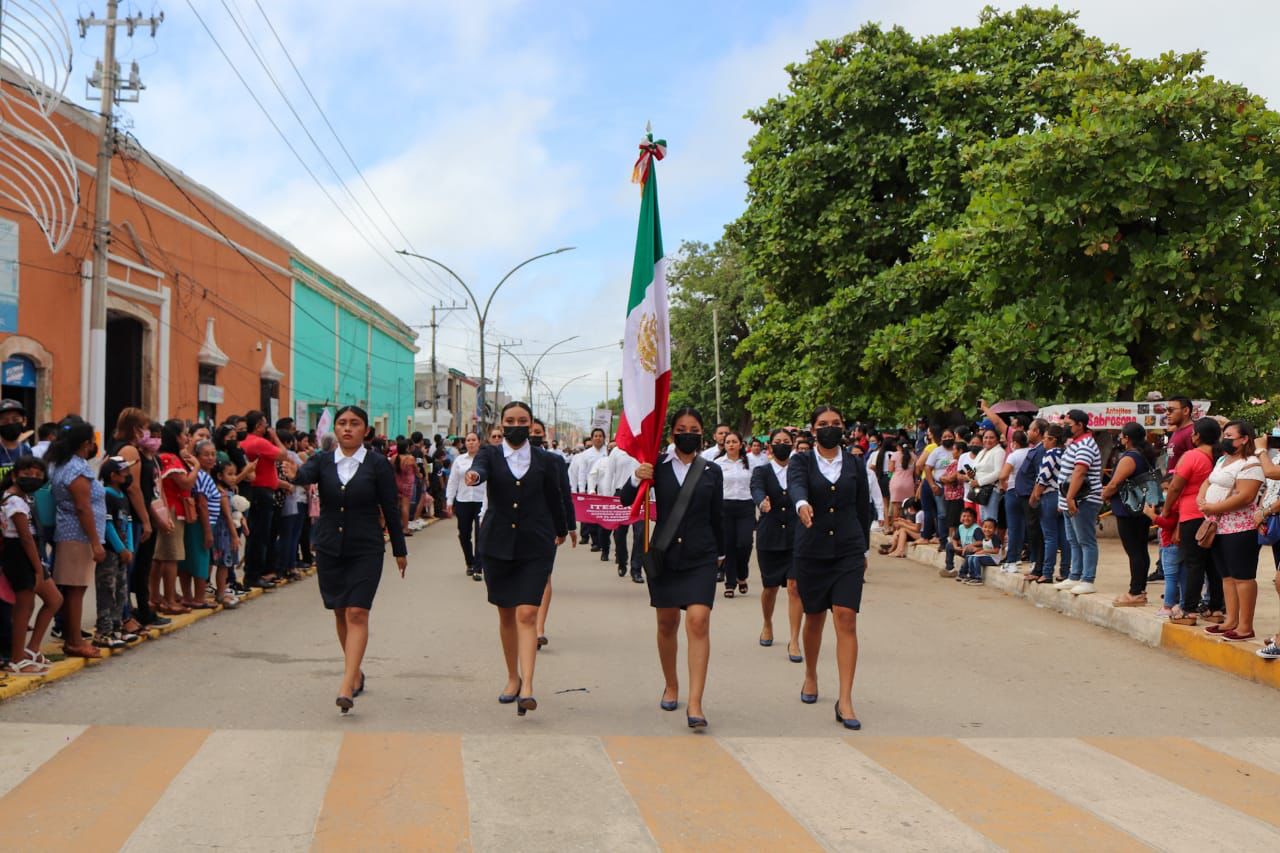 Con emotivo desfile por las principales calles de esta ciudad, se conmemoró el 212 aniversario de la Independencia de México, con la participación de las escuelas de nivel medio, medio superior y superior de Calkiní.