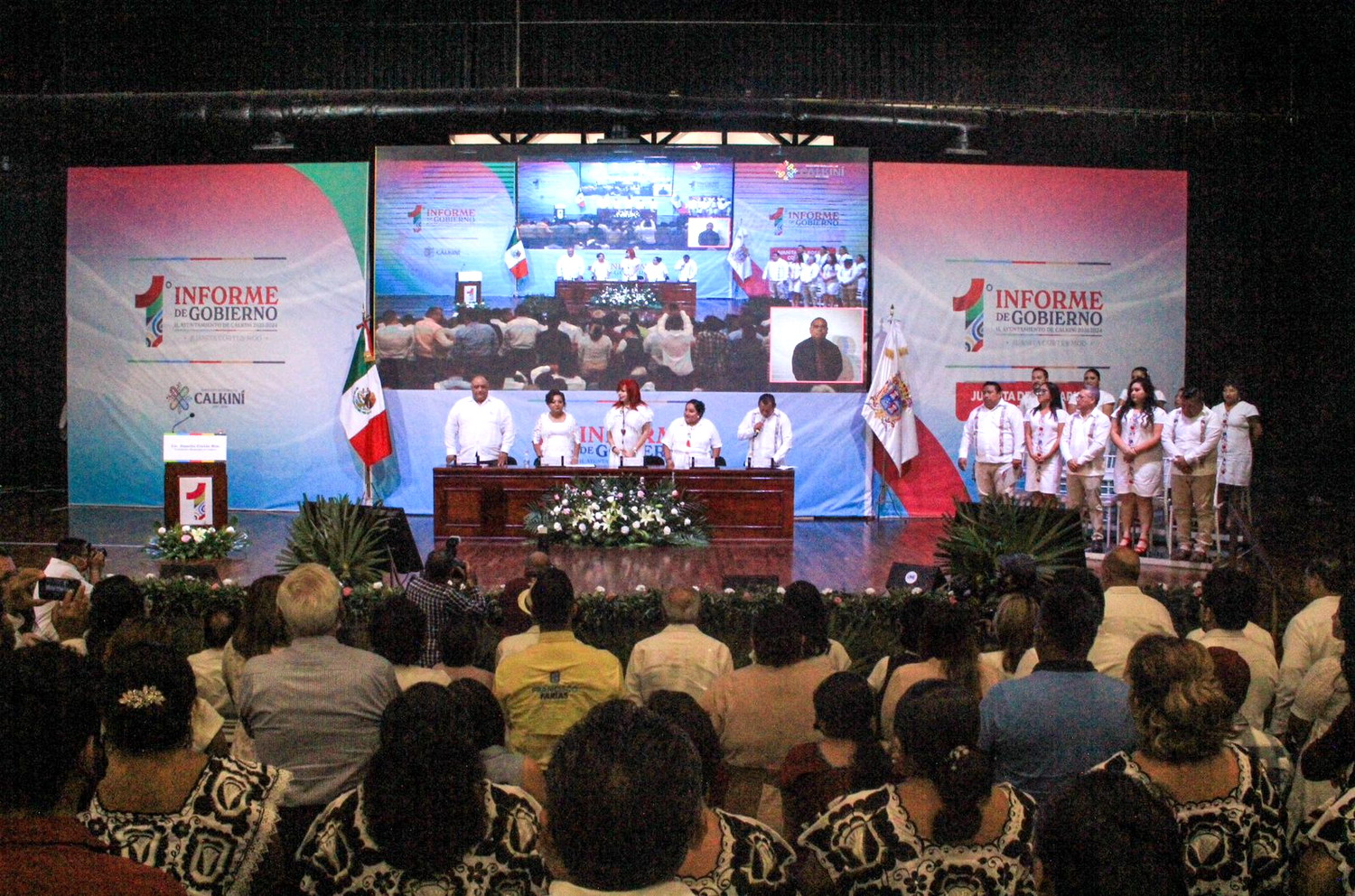 A este acto solemne, asistió la gobernadora del estado, Layda Elena Sansores San Román, a quien se le entregó un ejemplar del primer informe de actividades de esta administración municipal, que encabeza Juanita Cortés Moo.