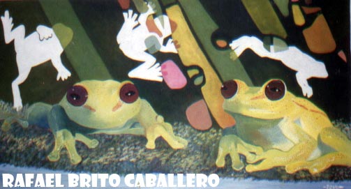 Detalle de "Ranas", acrílico sobre manta, de Rafael Brito Caballero; 2003.