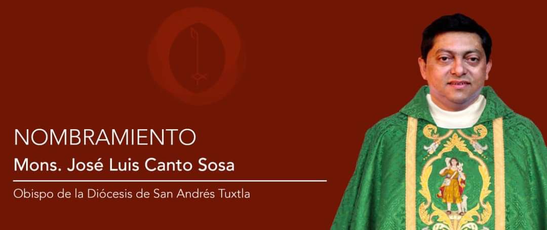 La Nunciatura Apostólica comunica a través de la Secretaría General de la Conferencia del Episcopado Mexicano, que su Santidad Francisco se ha dignado nombrar Obispo de la Diocésis de San Andrés Tuxtla, Veracruz, al Pbro. José Luis Canto Sosa, al momento Vicario General de la Diocésis de Campeche. Dicha noticia ha sido publicada en L'Ossevatore Romano el día de hoy, 14 de agosto, del presente año a mediodía tiempo de Roma. (Dice la nota oficial publicada por la Nunciatura Apostólica de México).