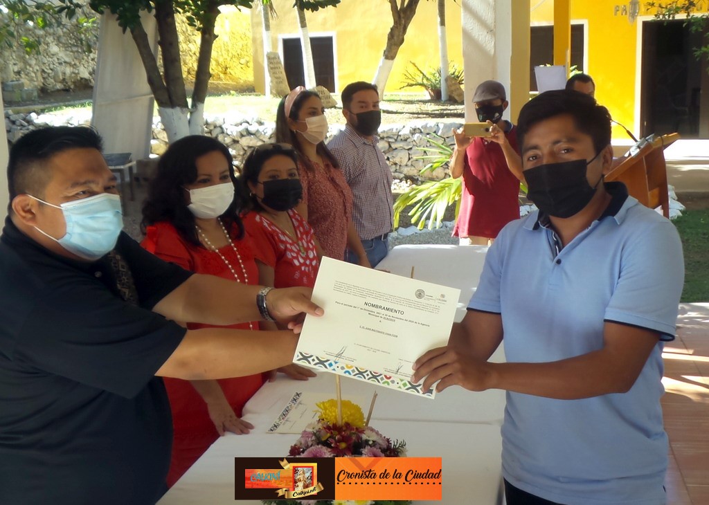 El miércoles 1 de diciembre, a las 13:00 hrs., se realizó la entrega de nombramientos a los nuevos comisarios y agentes municipales. La presidenta Juanita Cortés Moo y el secretario del Ayuntamiento, Manuel Árvez Pérez, encabezaron el protocolo (e hicieron uso de la palabra) en el kiosco de la Casa de Cultura de esta ciudad. La ceremonia también fue presidida por los regidores Yhonny Collí Chim, Lucero Haas Camas y Milton Millán Atoche, así como la síndica Romalda Can Collí. Durante el evento, la alcaldesa presentó a directores y jefes de área del gobierno municipal. |