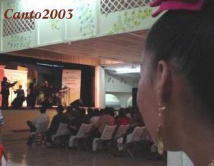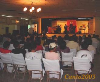 Mientras cantaba, el teatro en semipenumbra -donde integrantes