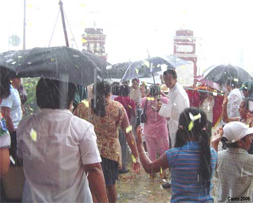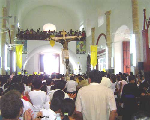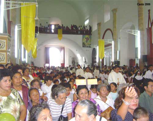 asistentes, en el atrio y en el interior del templo.