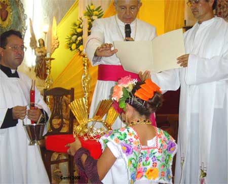 y Betancourt, el Obispo avanzó hasta el altar.