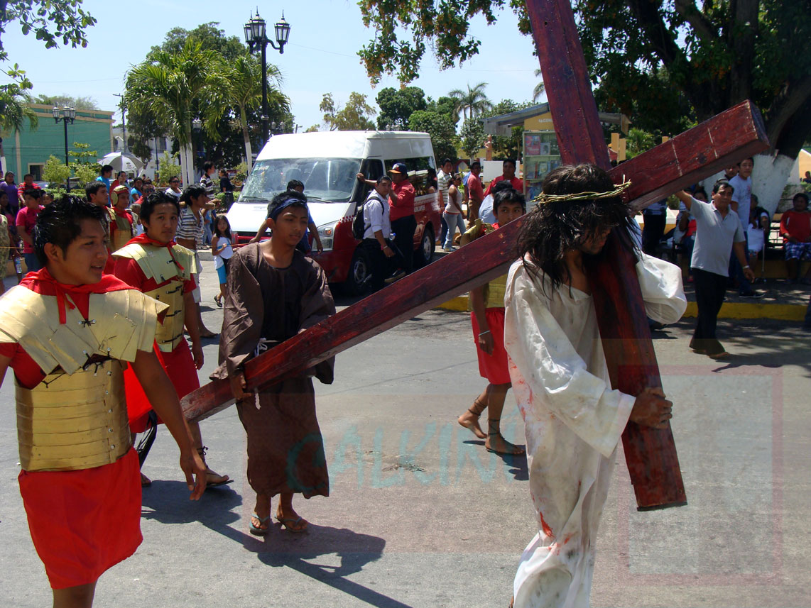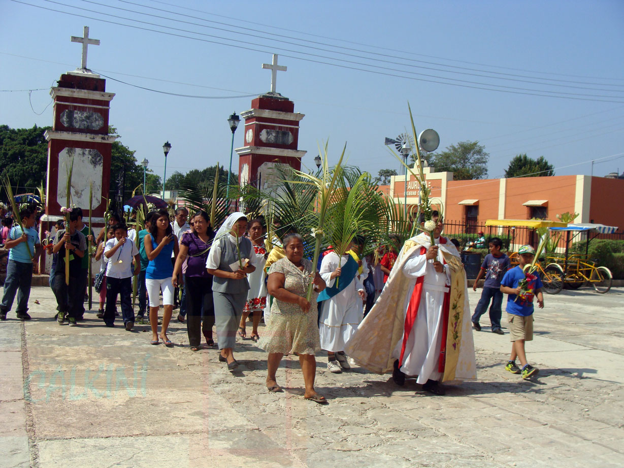 El Domingo de Ramos se bendicen palmas de huano y se realizan misas en el templo parroquial y en varias capillas de la ciudad de Calkiní, al iniciar el programa de actividades.