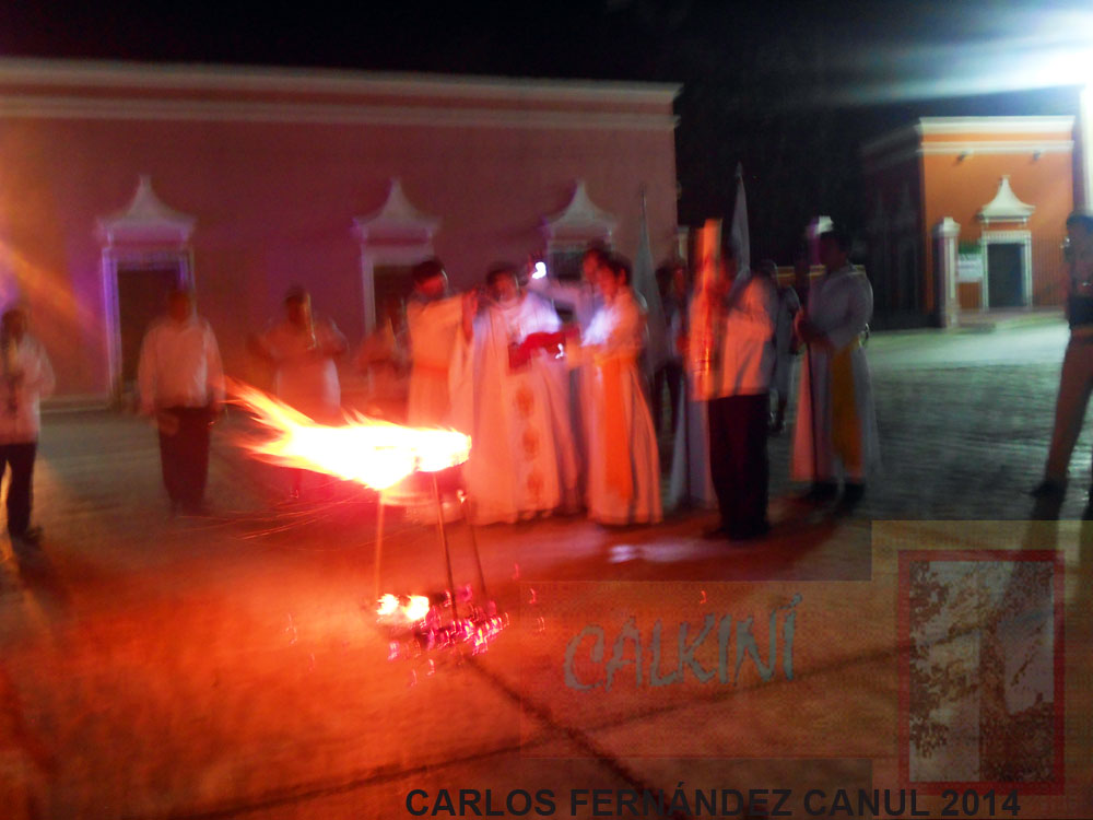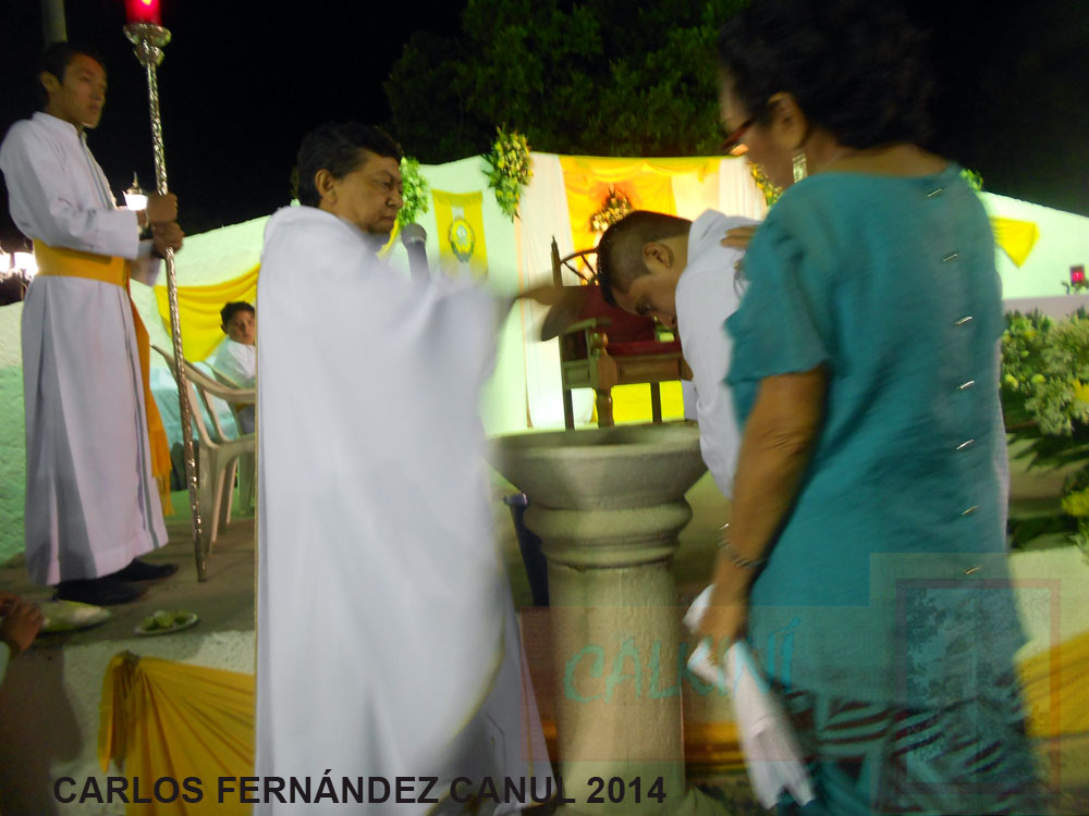 A las 11:15 p.m., al entonarse el Canto del Gloria, las campanas del templo repicaron, se encendieron las lámparas, anunciando con esto la Resurrección de Jesús, y apareciendo en el centro del altar la imagen del Resucitado.