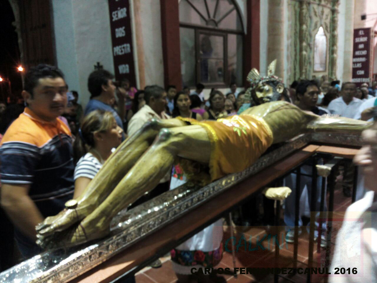 Una vez colocada la imagen en el centro del recinto, para su veneración, los calkinienses le patentizaron calor humano al Cristo, el cual ha sido venerado por numerosas generaciones. |