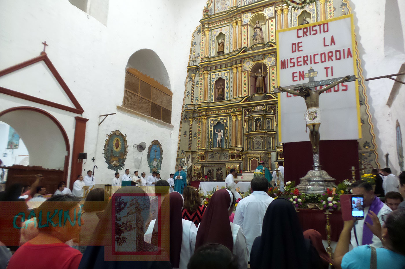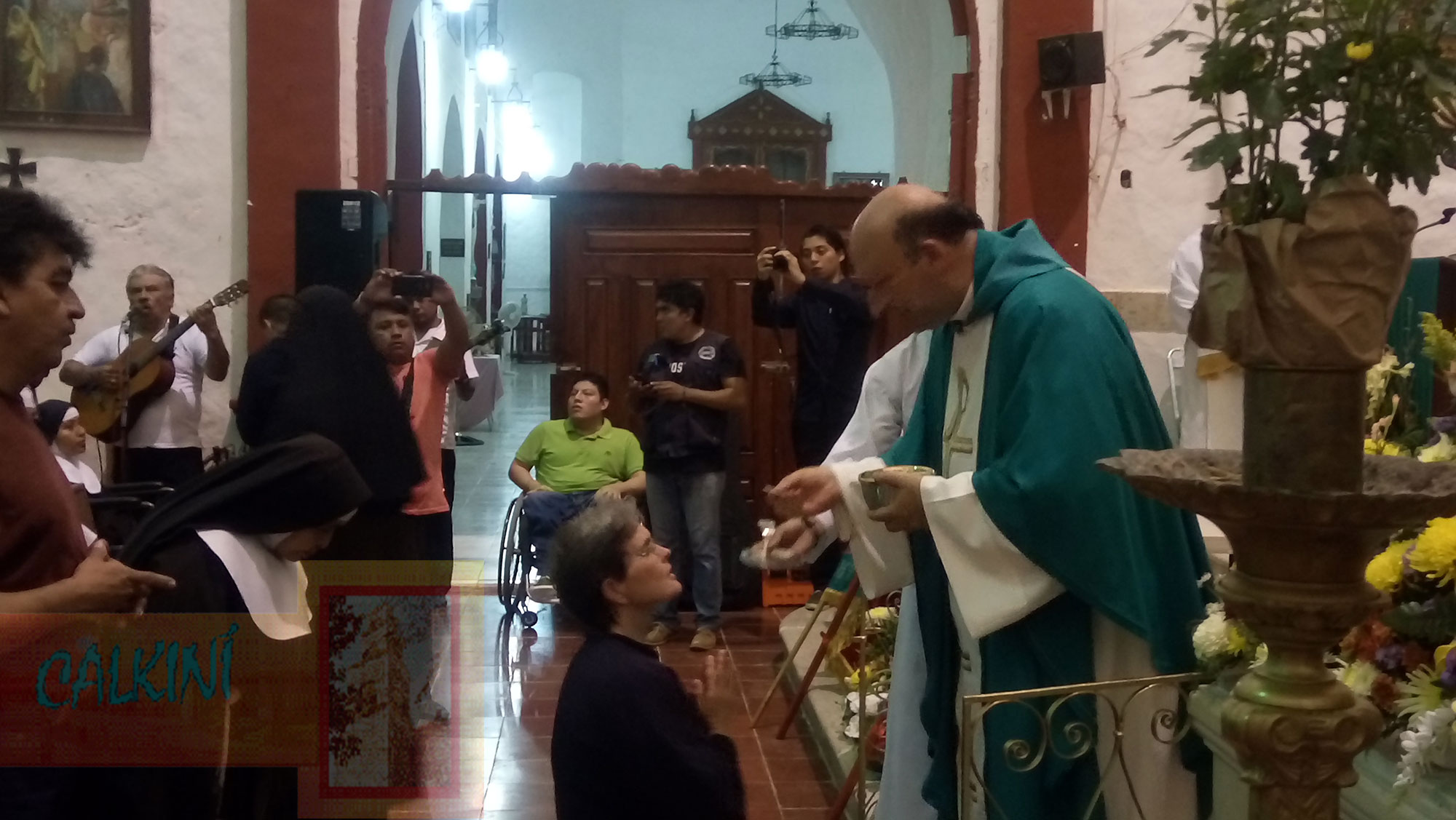 A las 6 de la tarde ofició una Misa en el templo, acompañado por Mons. José Francisco González, Obispo de Campeche; sacerdotes, seminaristas y representantes de diversos grupos católicos y comunidad presente.