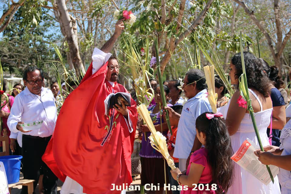 Al empezar la ceremonia en el templo de San Luis Obispo, Kantún Huchim: recordó: después de habernos preparados desde el principio de la Cuaresma con nuestra penitencia y obras de caridad, hoy nos reunimos para iniciar -unidos con la Iglesia- la celebración anual del misterio pascual, es decir, la pasión y resurrección de Jesús, misterios que inician con la entrada en Jerusalén.