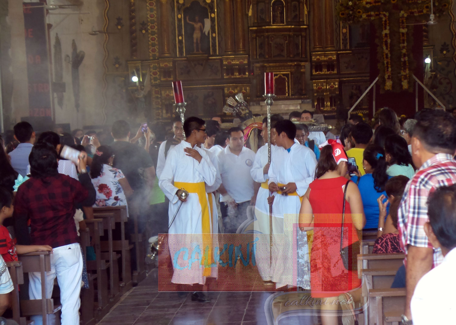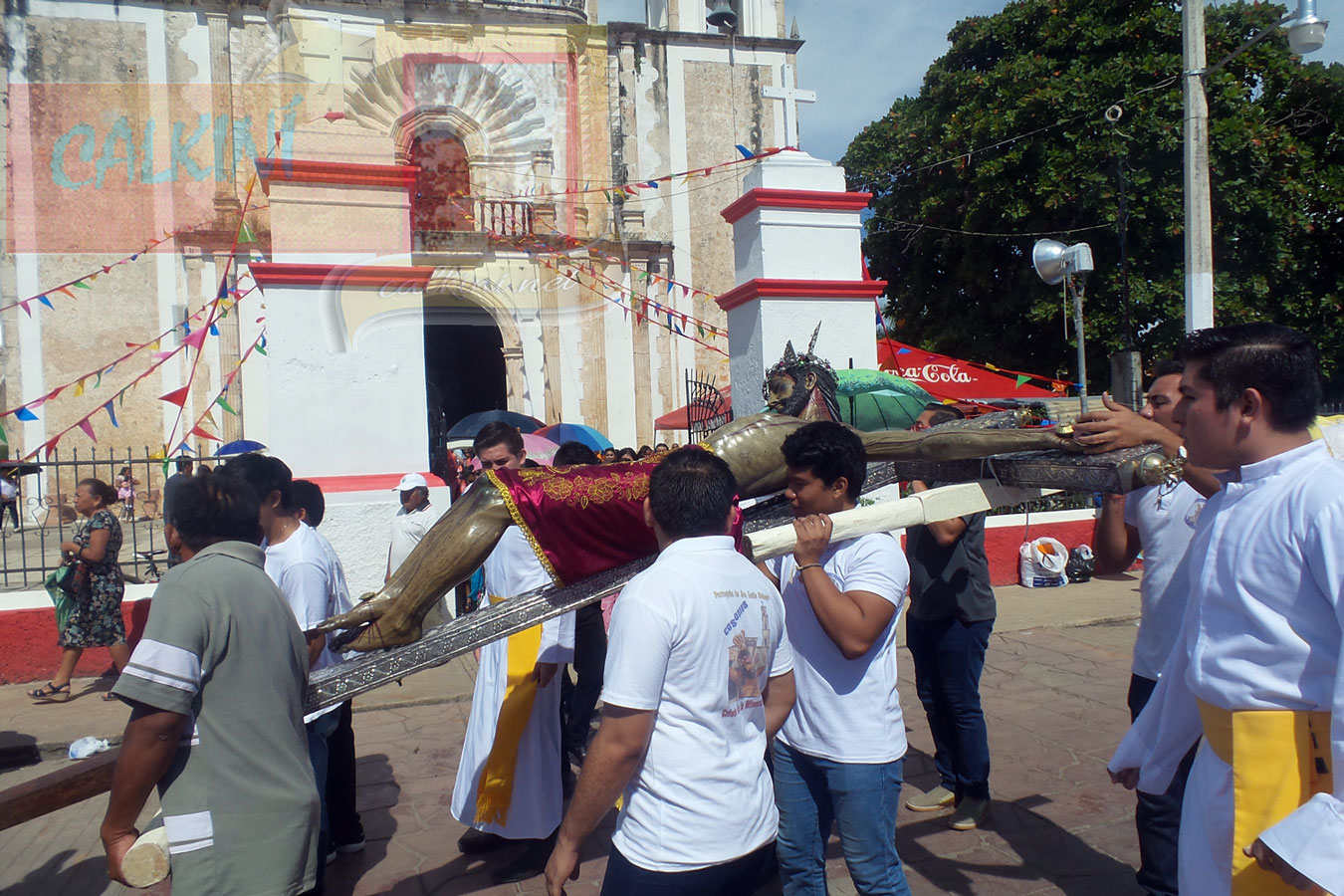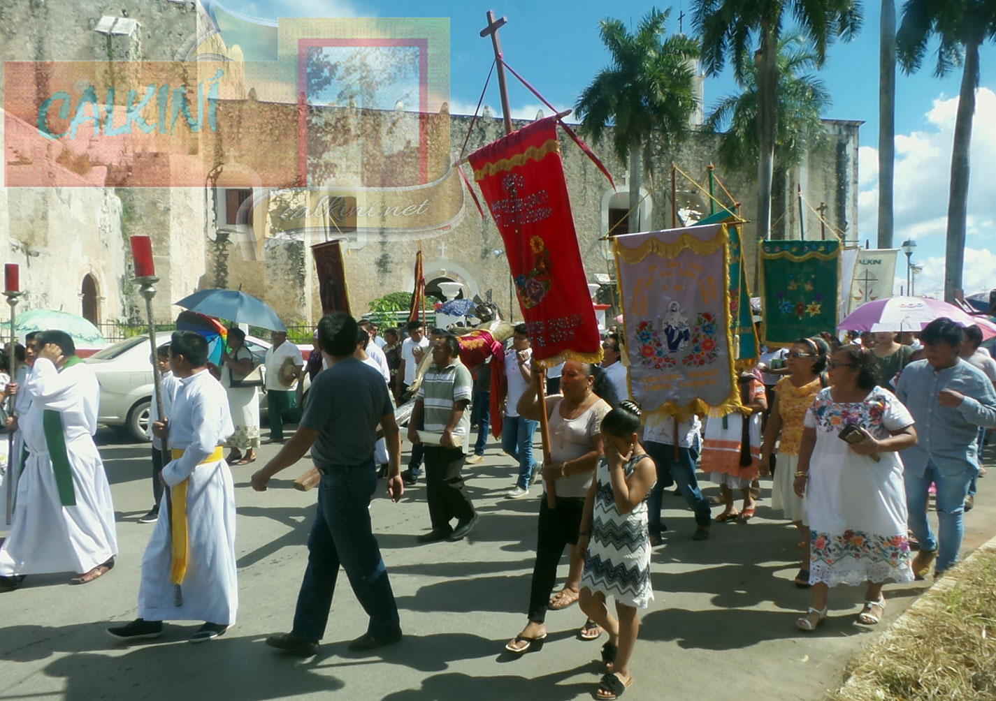 Bajo los inclementes rayos del sol, la procesión recorrió una parte del centro histórico, haciendo su entrada al recinto a las 13:30 hrs., con tronar de voladores, aplausos, cantos, vivas y más que nada el calor humano de los calkinienses que demostraron un año más su fe y amor a su venerado patrono.