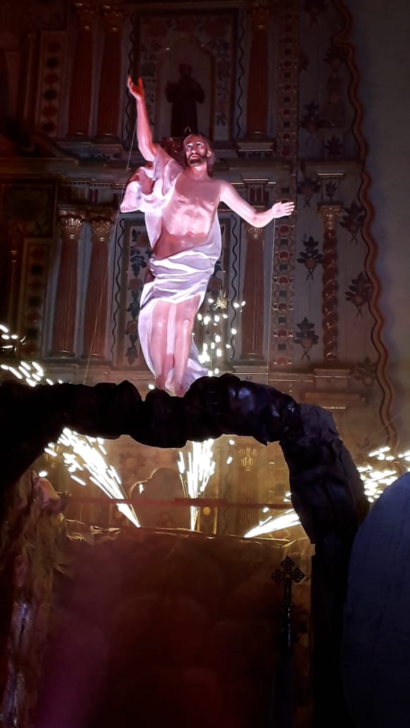 Se leyó el Pregón Pascual, el libro del Exodo y las lecturas de los profetas Isaías y Ezequiel; una vez terminado este rito, se entonó el canto del Gloria, se encendieron las luces y la imagen de Jesús Resucitado apareció, se escuchó el júbilo de los presentes, aplausos, repicar de campanas, cantos, globos. y luces de bengala que hicieron emotivo el momento.