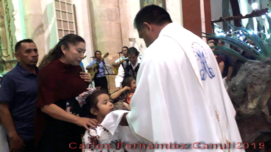 Calkiní, 25 de diciembre de 2019. (Carlos Fernández Canul).- Anoche, con Solemne Eucaristía, los católicos atestiguaron un año más el Nacimiento del Niño Dios, en ceremonia presidida por el Pbro. Juan Eliodoro Kantún Huchim, en el templo de San Luis Obispo donde asistieron numerosos feligreses. Fue en el momento del canto del Gloria cuando la familia Alonso Castillo entregó -al celebrante- la imagen del Niño Dios, para que la colocara en el pesebre, junto a las imágenes de la Virgen María y San José, recordando con esto el nacimiento de Jesús. |