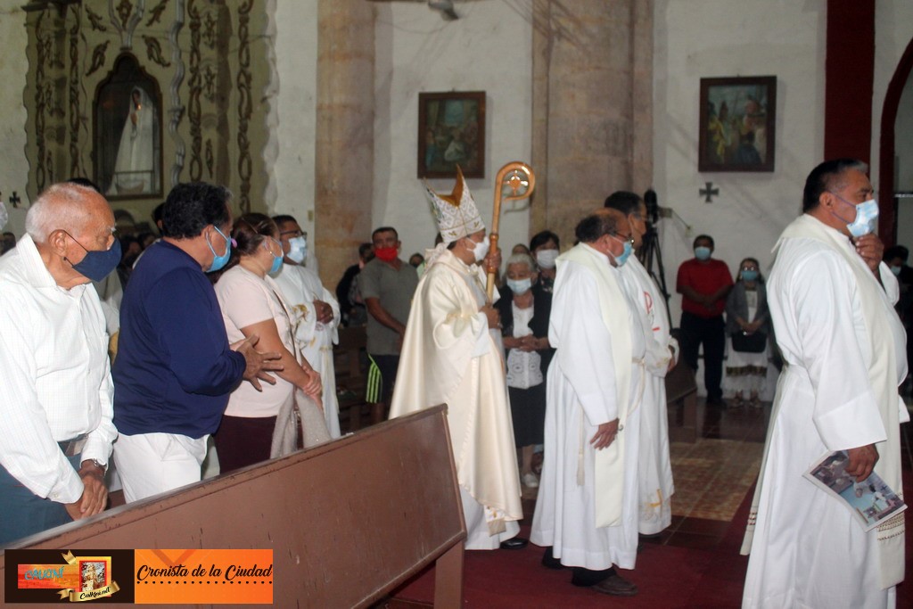 Calkiní, 5 de enero de 2022.- Anoche, Mons. José Luis Canto Sosa, Obispo de San Andrés Tuxtla, Veracruz, celebró solemne Eucaristía al cumplir su XXV aniversario sacerdotal, evento realizado en el Templo de San Luis Obispo de esta ciudad.