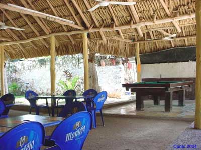 una palapa con mesa de billar. También